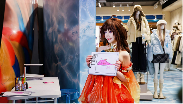 本次主题快闪店将这一诗意故事转化为可感、可触的实体空间。“锦鲤祈愿池”巨型锦鲤装置融合东方诗意与当代视觉美学,以“许愿”与“送福”创意呈现,为观众带来视觉与深度情感的触碰。